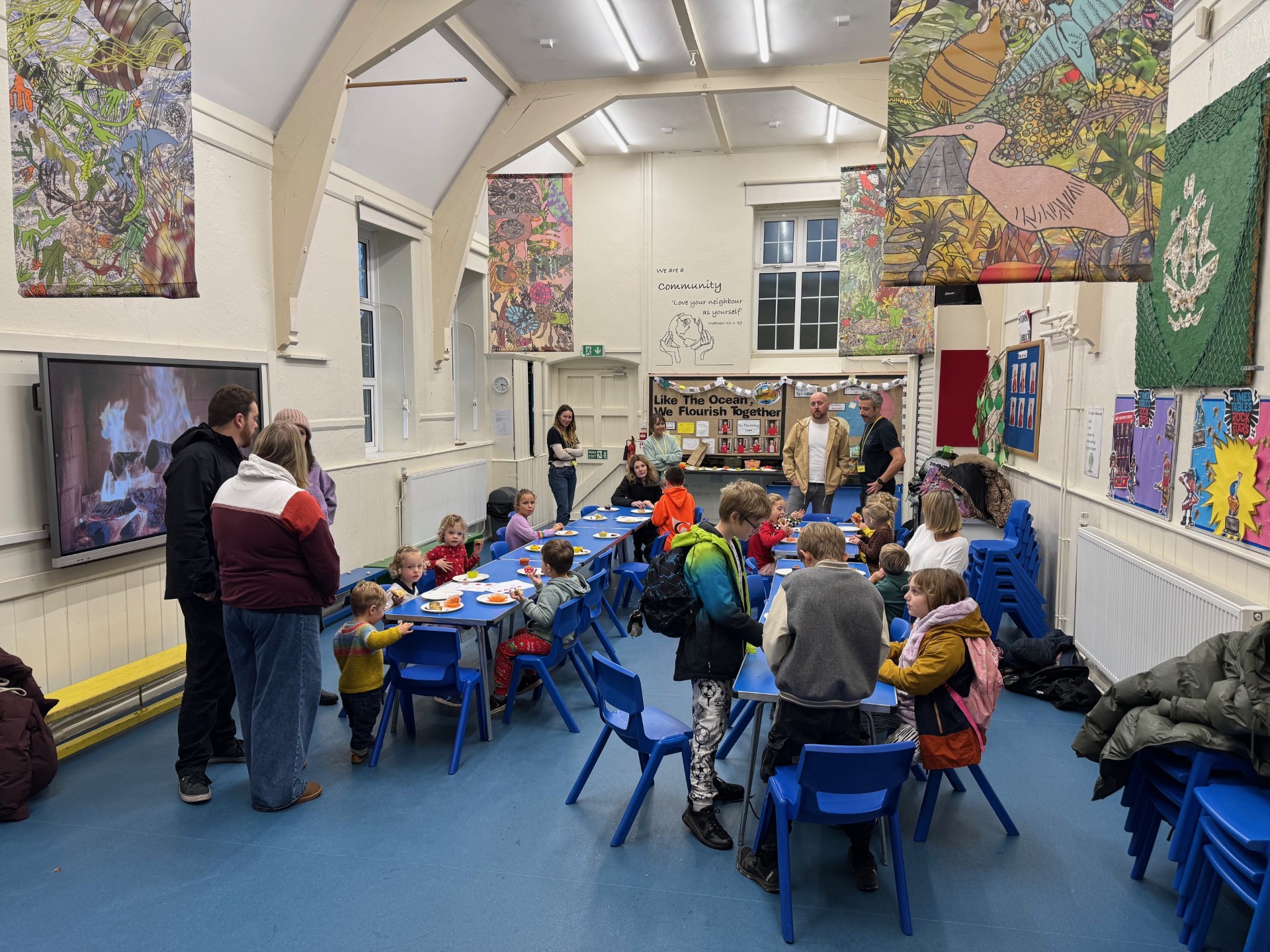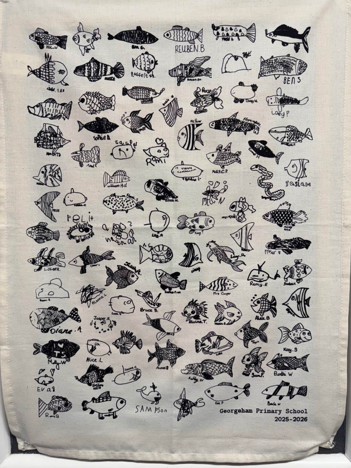 On Friday 14th November, FROGS organised a forest party where children decorated cupcakes and made lanterns whilst parents/carers enjoyed a cup of hot chocolate or chai tea! The children and staff all drew pictures of fish to make a custom tea towel - the initial batch were sold out within 30minutes!
